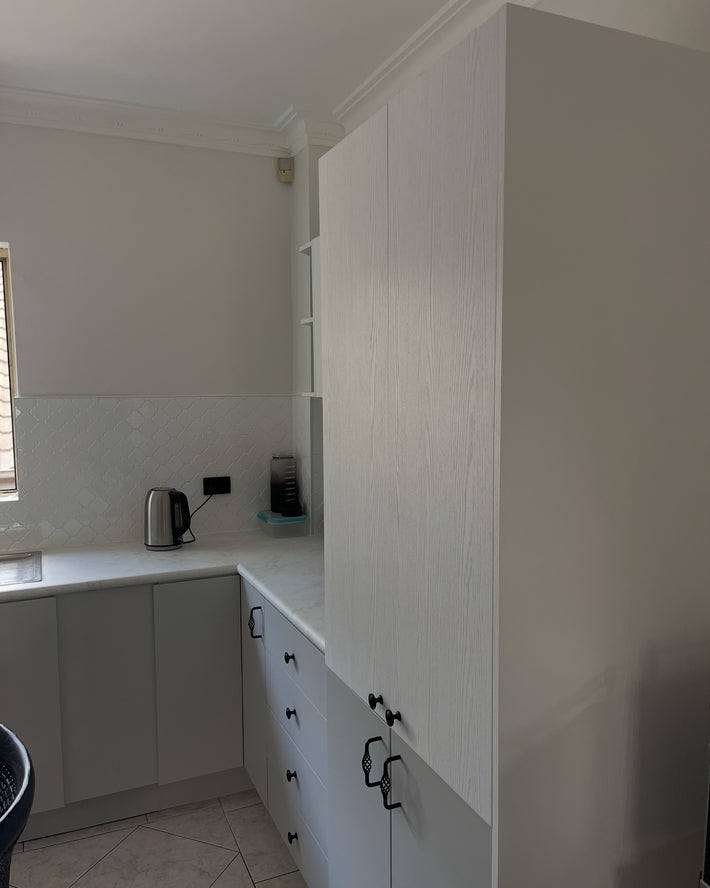 Installation of Premium architectural vinyl with precision edge work. (handle removal + reinstall).